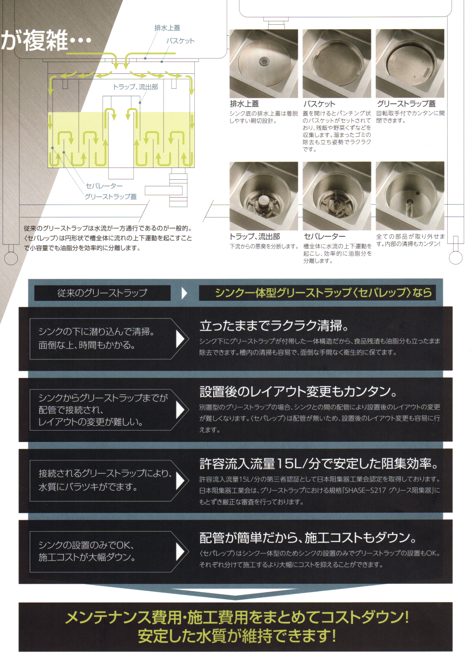 | シンク一体型グリーストラップ SEPAREP<セパレップ> | ||