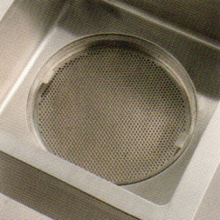 | シンク底の排水上蓋は着脱しやすい親切設計。 | ||
