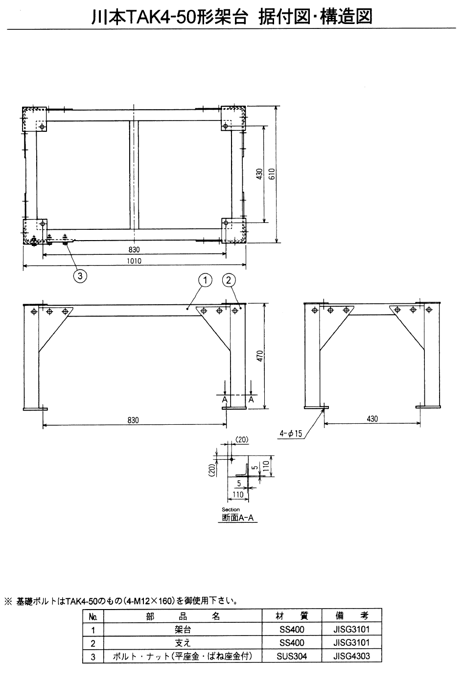 多段タービンポンプ 参考品番 T-R656X2ME5.5 川本T-R形タービンポンプ 構造図